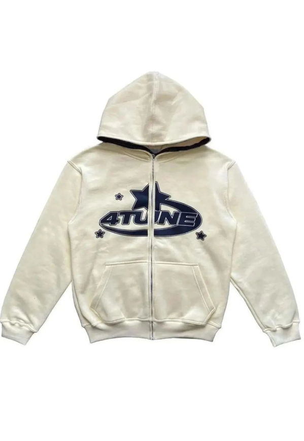 4tune Beyaz Kalın Kumaş Fermuarlı (unisex) Kapşonlu