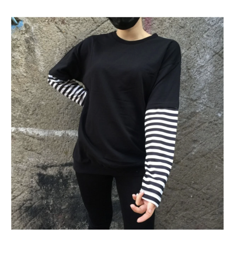Düz Siyah Fake Kollu T-Shirt