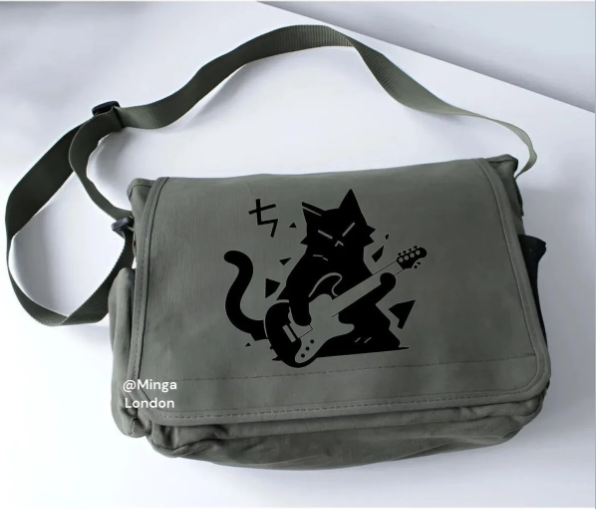 Haki Gutiar Cat Baskılı Baskılı Postacı Çantası