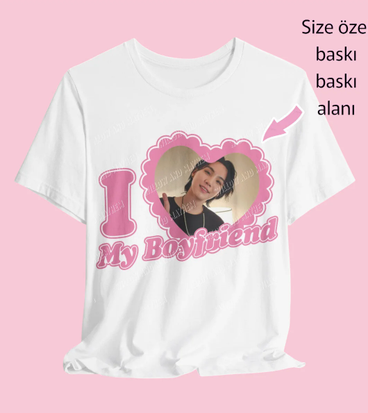 I My Boyfriend Kişiye Özel Fotoğraf Baskılı Beyaz T-shirt