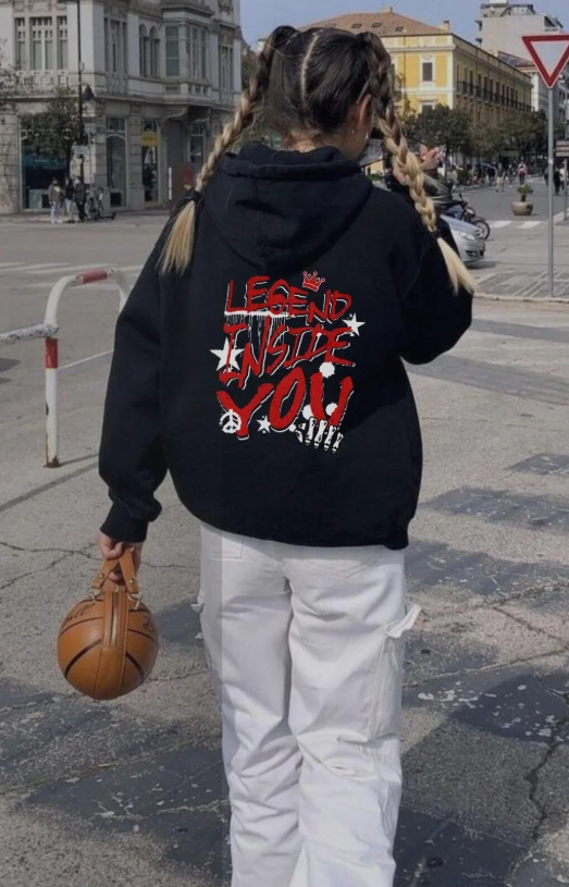 Legend Inside You Baskılı Siyah Kapşonlu Sweatshirt