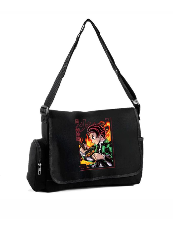 Siyah Demon Slayer Baskılı Postacı Çantası