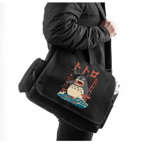 Siyah Angry Neighbour Totoro Baskılı Postacı Çantası