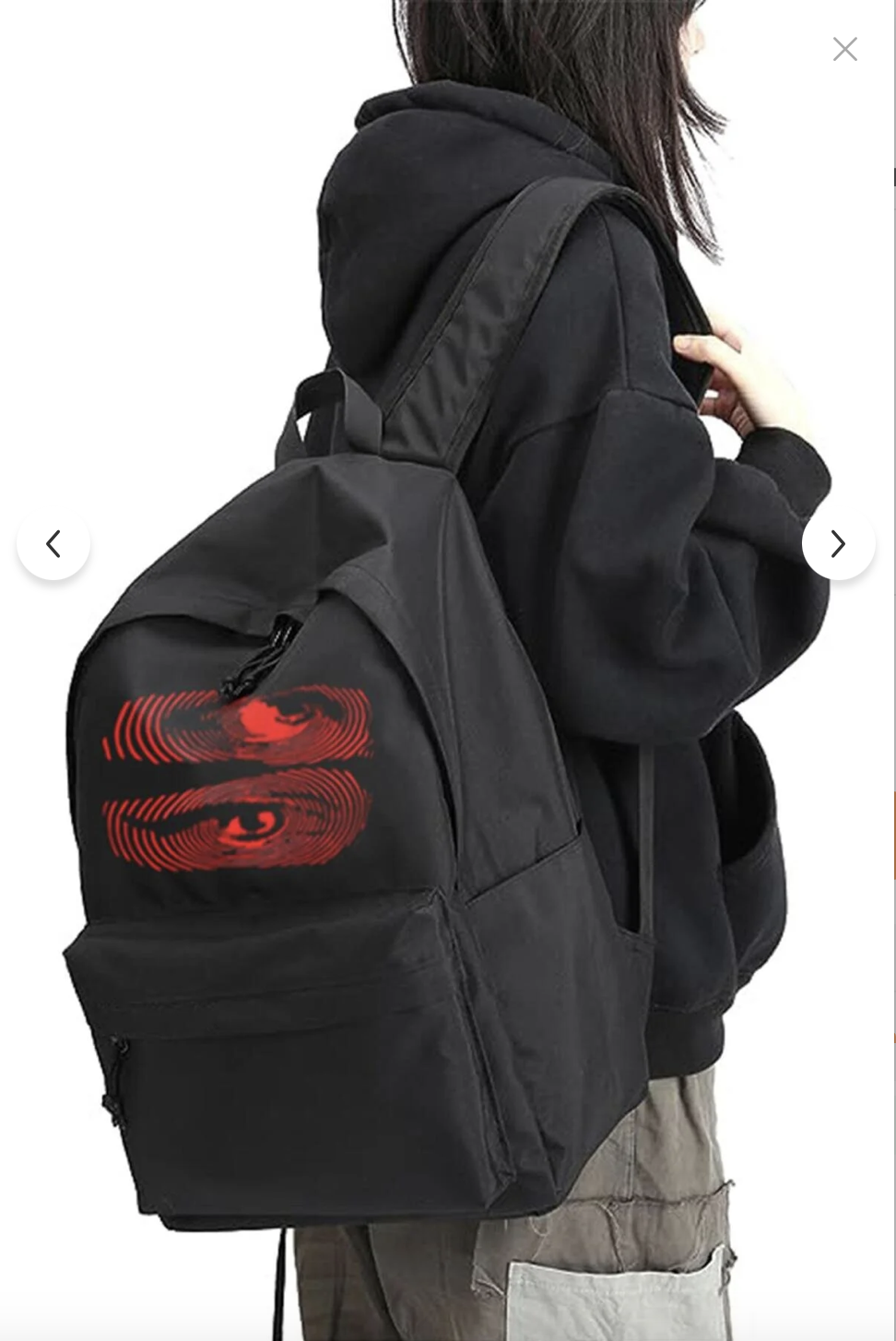 Siyah Anime göz parmak izi baskılı sırt çantası