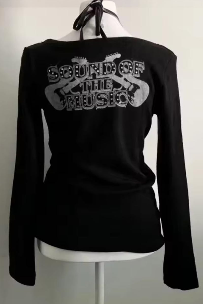 Siyah Black The Festival Harajuku Y2K Bağlamalı Uzun Kollu Crop