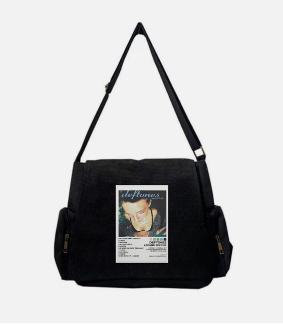 Siyah Deftones Around The Fur Albüm Kapağı Baskılı Postacı Çantası