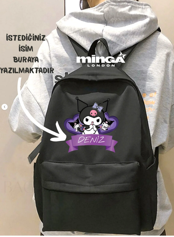 Siyah Kişiye özel İsim Baskılı Okul Kurs Dershane Sırt Çantası