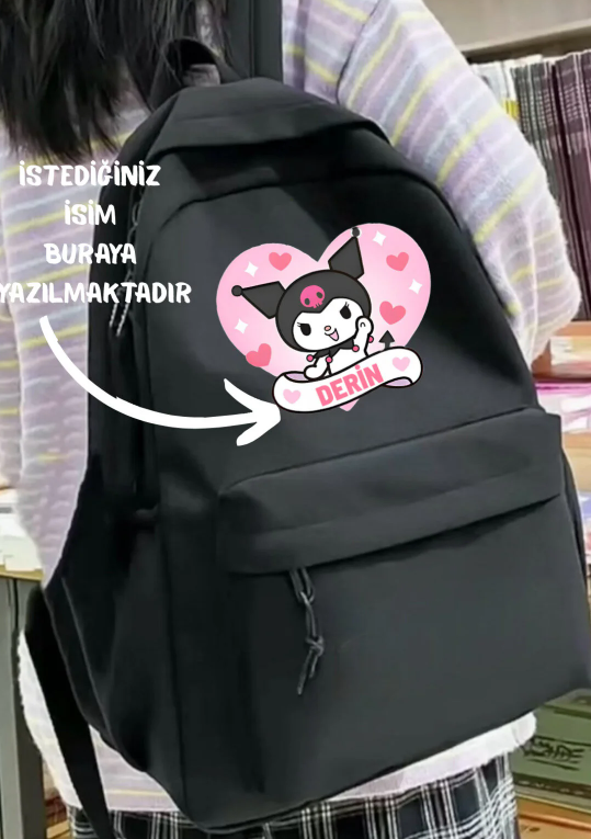 Siyah Kişiye özel İsim Baskılı Okul Kurs Dershane Sırt Çantası