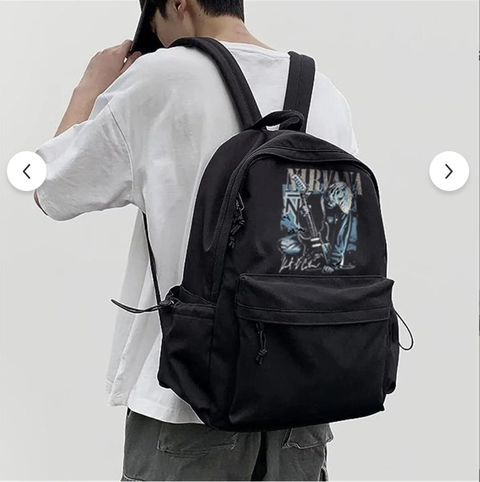 Siyah Nirvana Poster baskılı sırt çantası