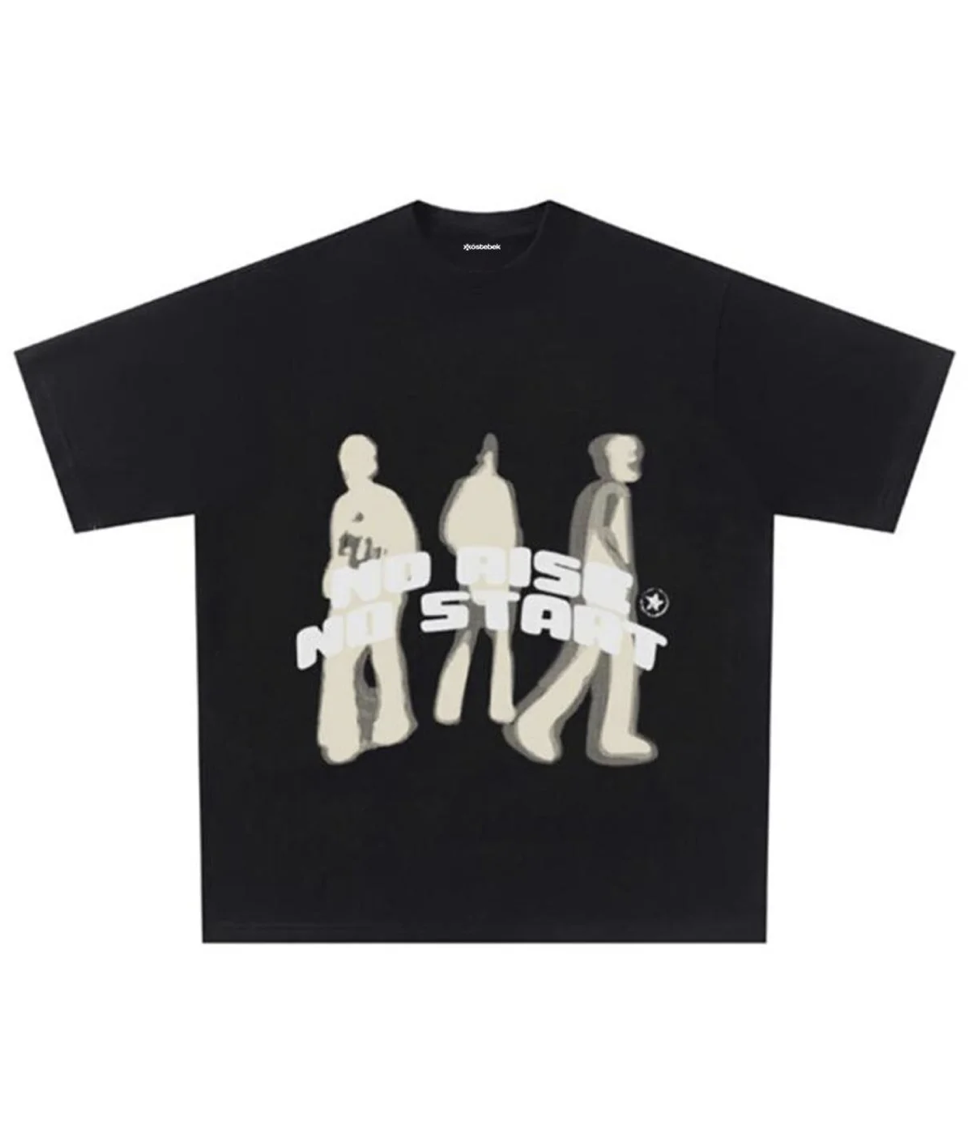 Siyah No Rise No Start baskılı oversize tişört