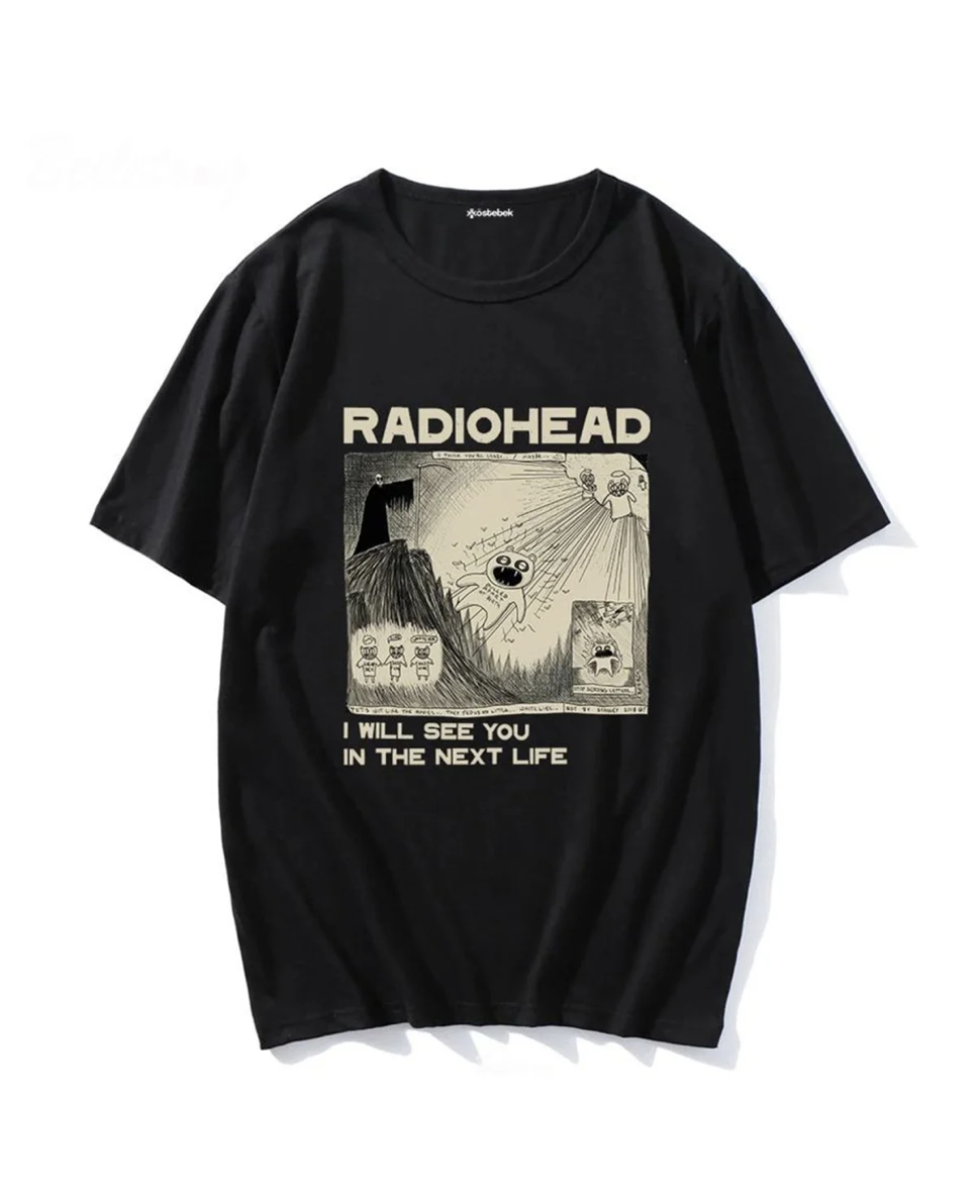 Siyah Radiohead baskılı Oversize t-shirt