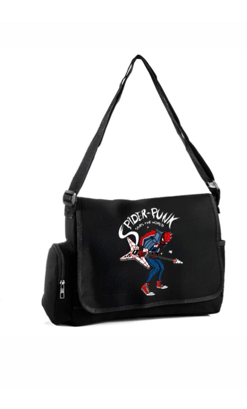 Siyah Spider Punk Baskılı Postacı Çantası