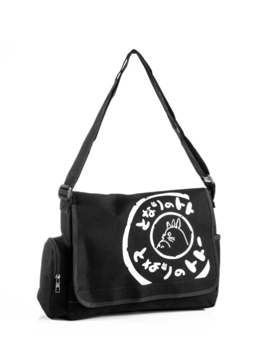 Siyah Totoro Beyaz Baskılı Postacı Çantası