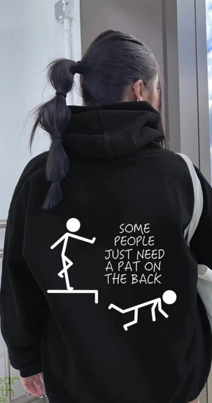 Slogan Baskılı Siyah Kapşonlu Sweatshirt