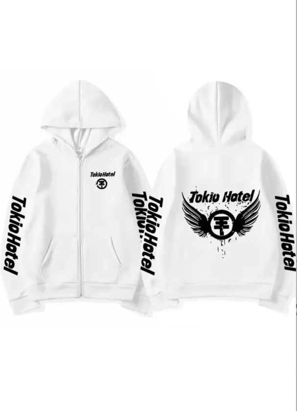 Tokio Hotel Fermuarlı Kapüşonlu Beyaz Hırka