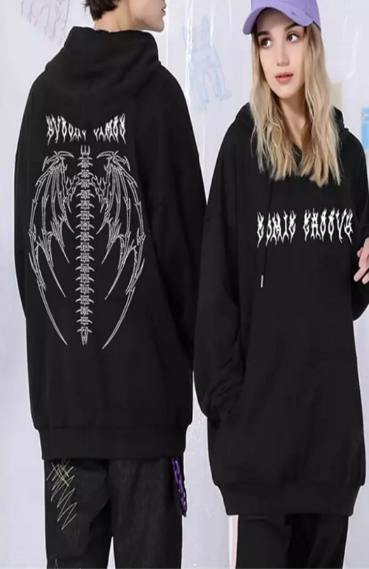 Touz Siyah Tribal Gothic Wings (Unisex) Kapşonlu