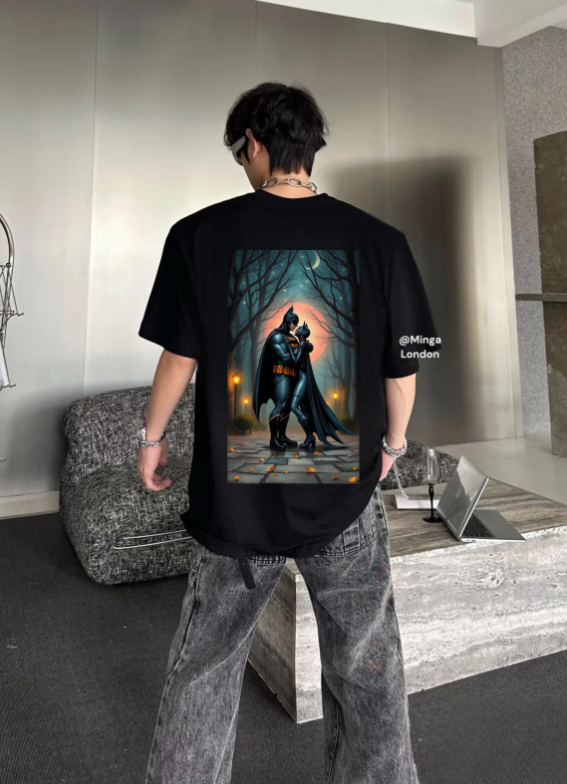Unisex Batman Sırt Baskılı Bisiklet Yaka T-Shirt
