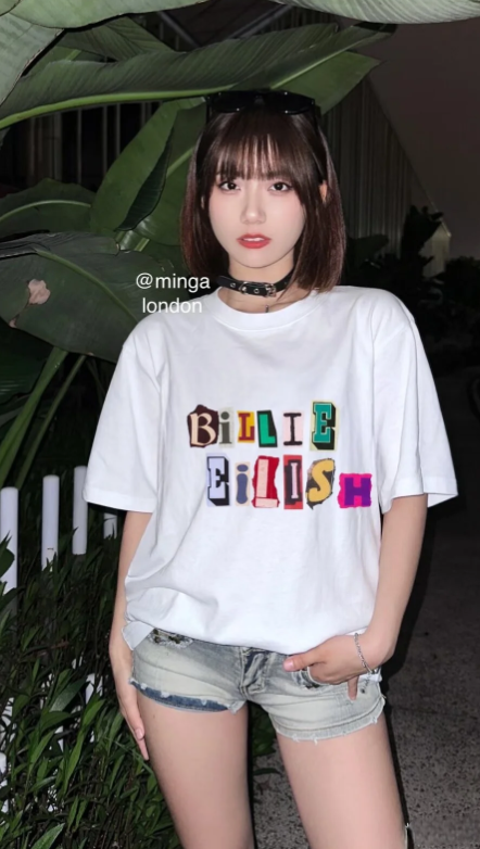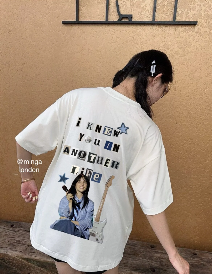 Unisex Billie Eilish Alphabet Design Ön Arka Baskılı Bisiklet Yaka T-Shirt