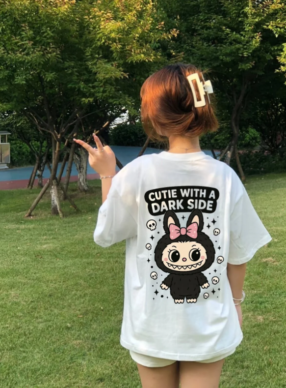 Unisex Black Labubu Baskılı Bisiklet Yaka T-Shirt