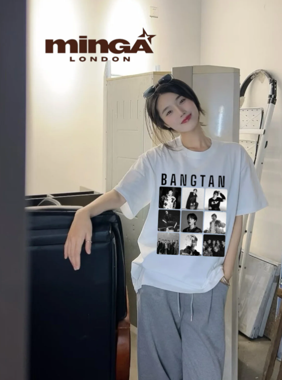Unisex BTS BANGTAN Baskılı Bisiklet Yaka T-Shirt