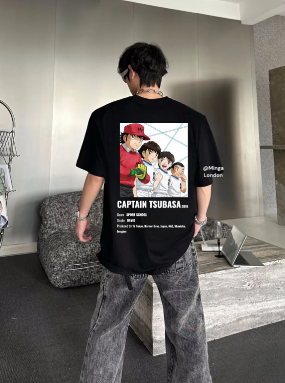 Unisex Captaın Tsubasa Sırt Baskılı Bisiklet Yaka T-Shirt