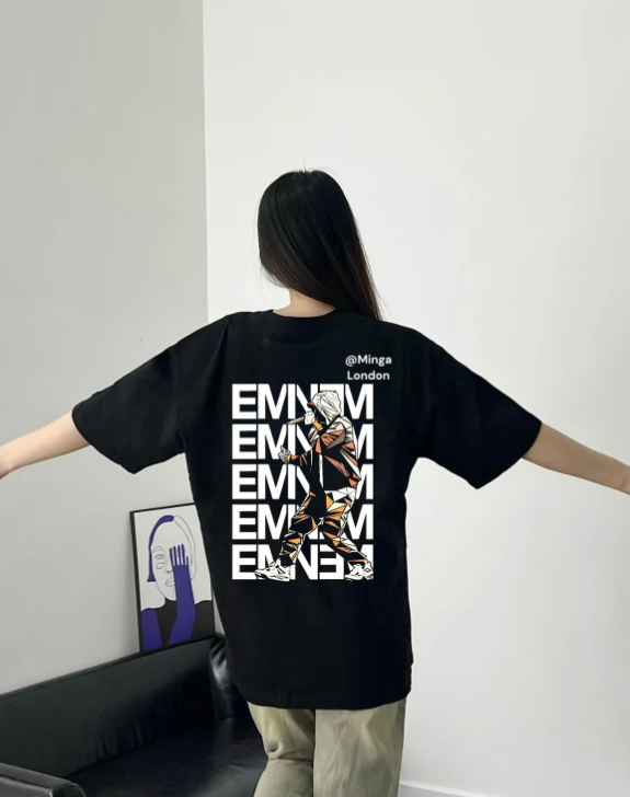Unisex Eminem Sırt Baskılı Bisiklet Yaka T-Shirt