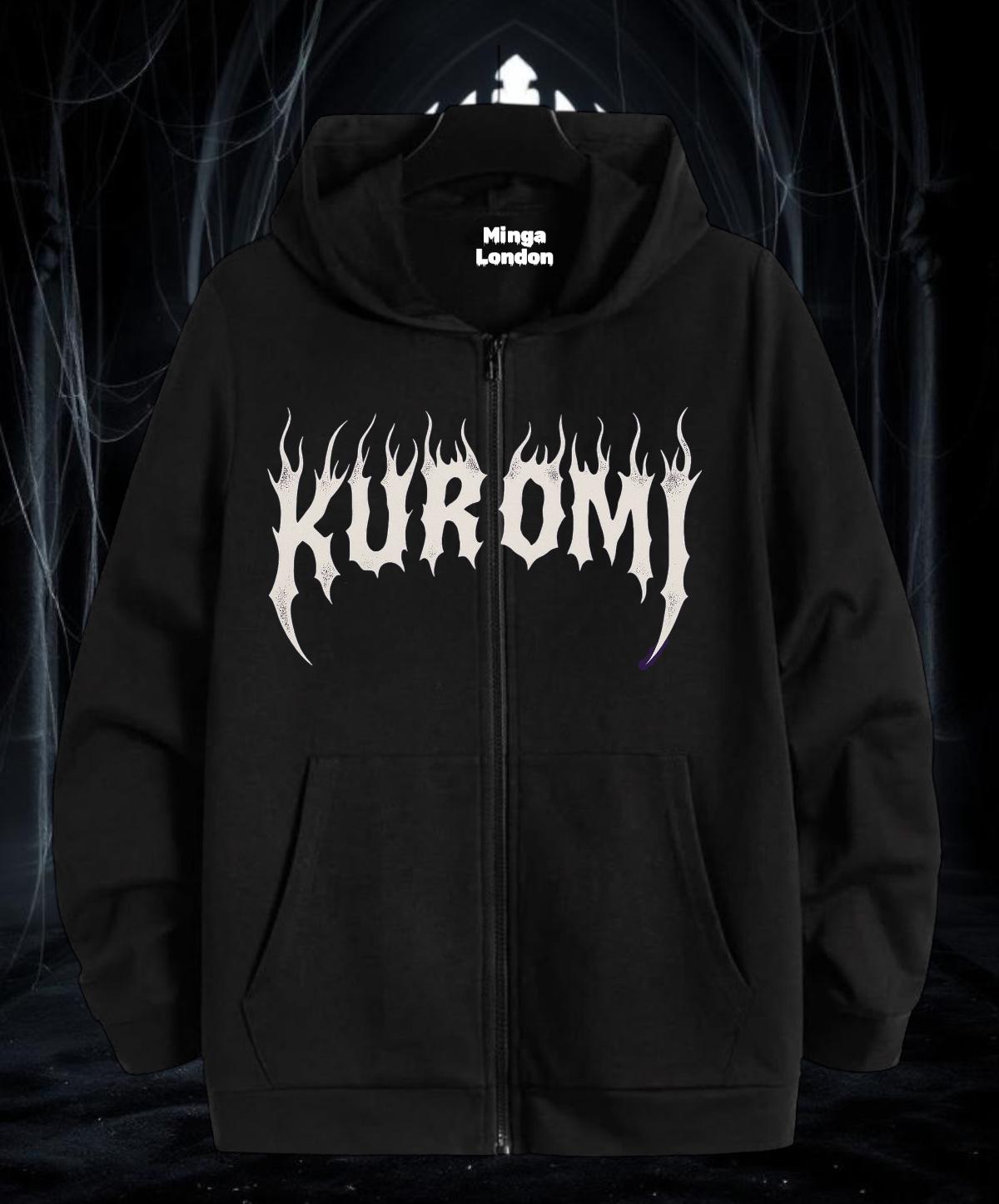 Unisex Kuromi Stil Baskılı Siyah Oversize Fermuarlı Sweatshirt Hırka