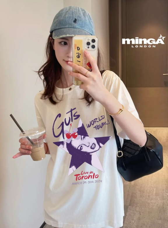 Unisex Olivia Rodrigo Toronto Tour Baskılı Baskılı Bisiklet Yaka Oversize T-Shirt