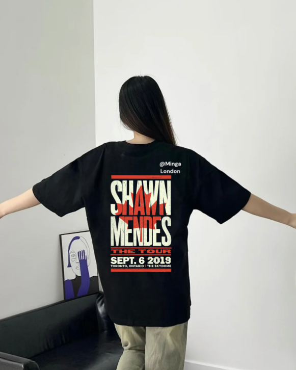 Unisex Shawn Mendes Baskılı Bisiklet Yaka T-Shirt