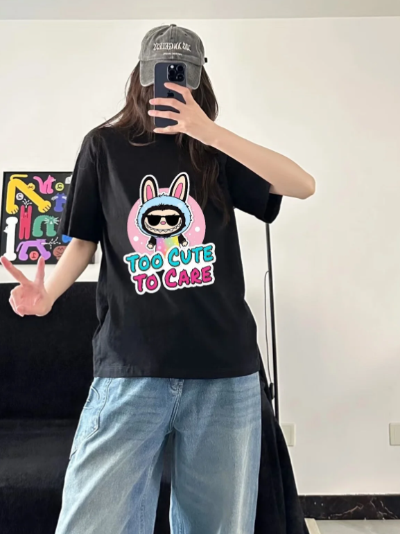 Unisex Spectacled Labubu Baskılı Bisiklet Yaka T-Shirt